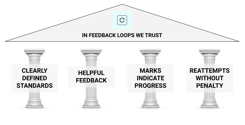 With clearly defined standards, we are telling students: Here is what you need to know, and here is how you can show me that you know it. The presence of such standards gives students something to organize their efforts around and helps them feel safe taking intellectual risks. So, in some ways, this “pillar” is actually more like a floor or a foundation.